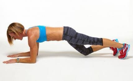 Assume low plank position. Alternate knee taps to the floor, focusing more on your low abdomen. Continue alternating for 45 seconds; do three sets.